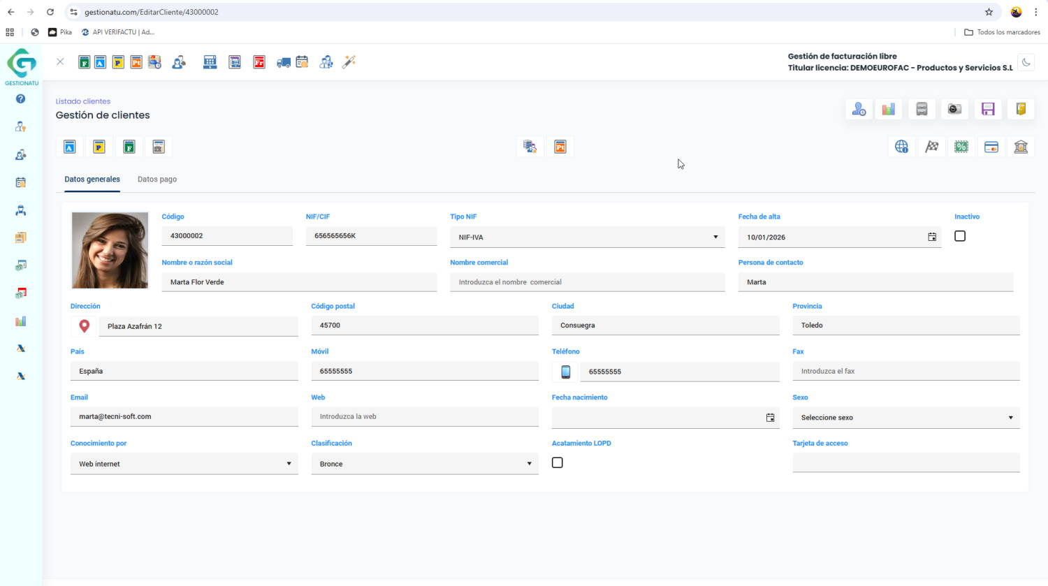 El sistema está preparado para el cumplimiento normativo, incluyendo la emisión y envío de facturas a la AEAT mediante el sistema Veri*Factu, garantizando una facturación segura, organizada y adaptada a la legislación vigente.