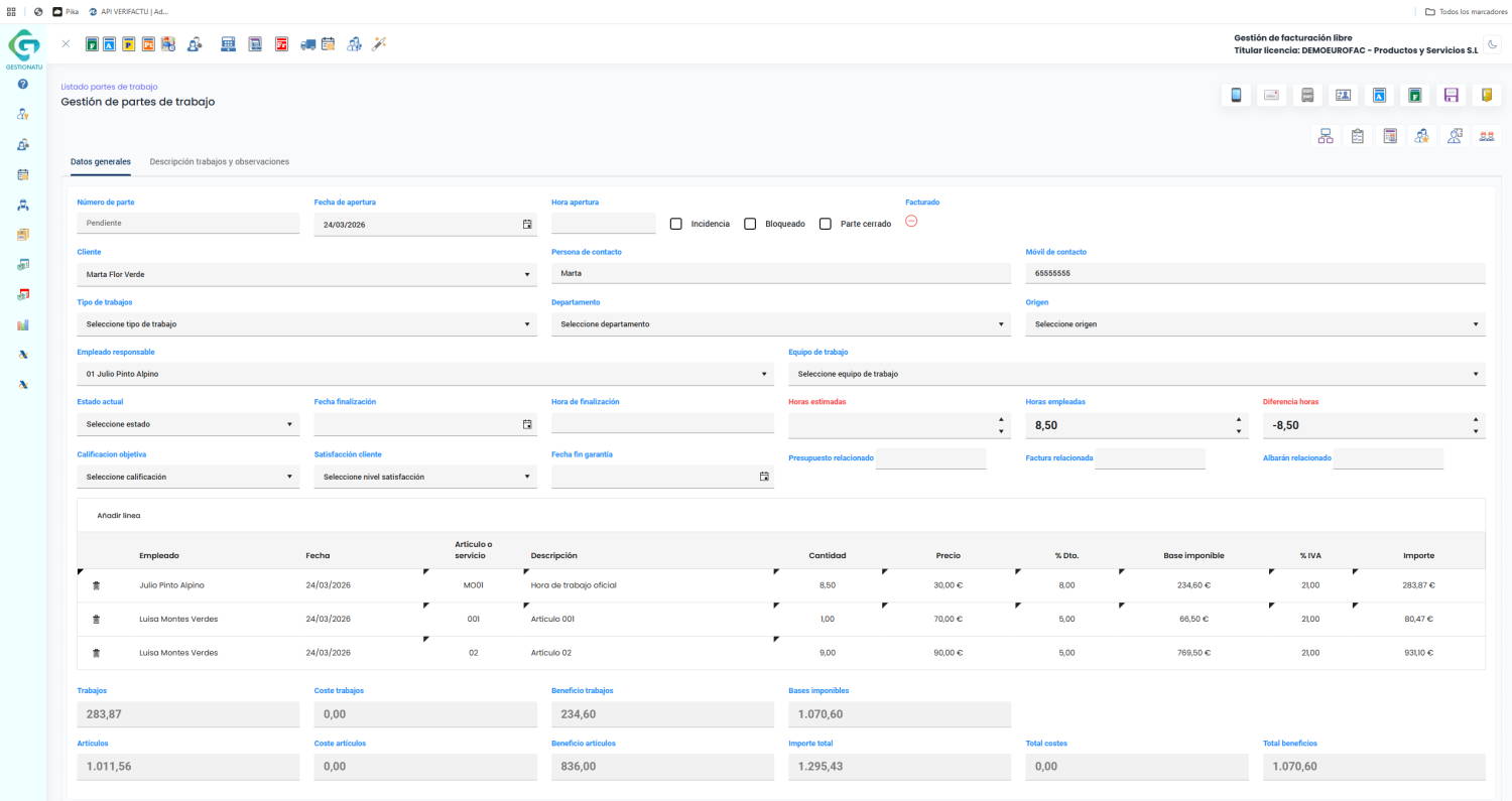 Gestiona los partes de trabajo de forma sencilla y organizada con nuestro software de gestión. Registra cada intervención, asigna tareas a empleados, controla tiempos y realiza un seguimiento completo de los trabajos realizados. Toda la información queda centralizada, facilitando la gestión diaria y mejorando la productividad del negocio.